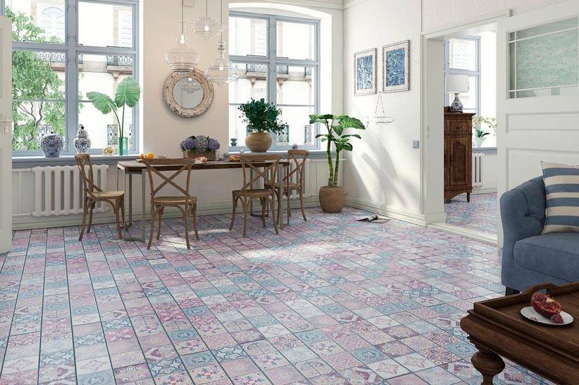 В оформлении квартир в прованском стиле активно используется керамика. Это может быть как небольшая мозаика, так и крупногабаритный керамогранит.