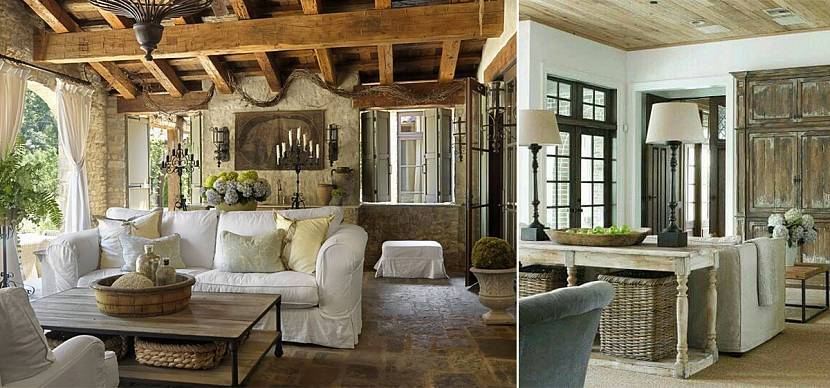 Под потолком в прованском жилище традиционно красовались массивные деревянные балки. И до сих пор этот элемент является одной из отличительных черт направления.