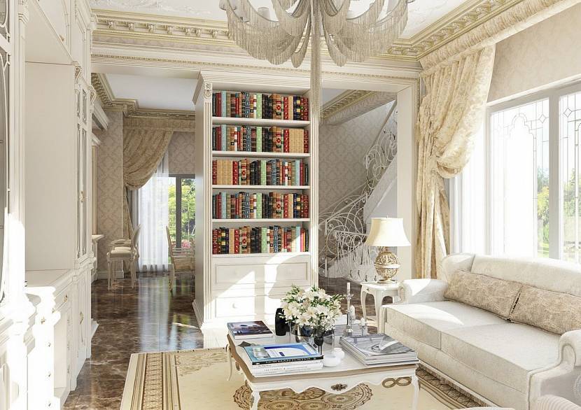 Ценители искусства могут заполнить свой дом картинами в изящных рамках. Создать романтическую атмосферу помогут канделябры и хрупкие люстры. Важным является наличие зеркал в деревянных рамках.
