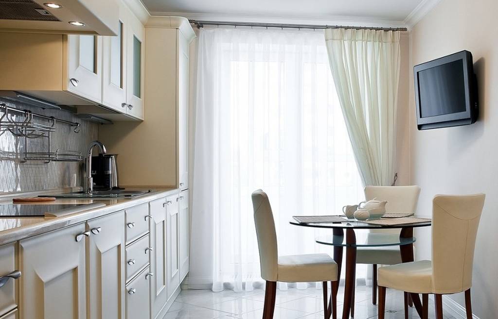 Но современные телевизоры есть возможность спрятать или разместить так, что никто не догадается, что на кухне вообще он есть.