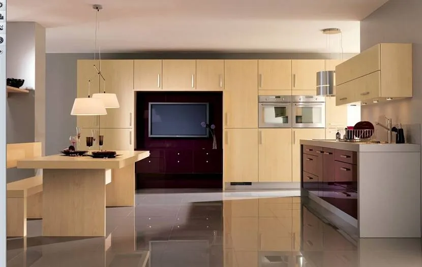 Одними из самых популярных и модных на сегодняшний день являются телевизоры, встроенные в кухонный гарнитур (угловой или прямоугольный). Обычно фиксируют такую технику рядом с посудомоечной машиной и другими необходимыми на кухне устройствами.