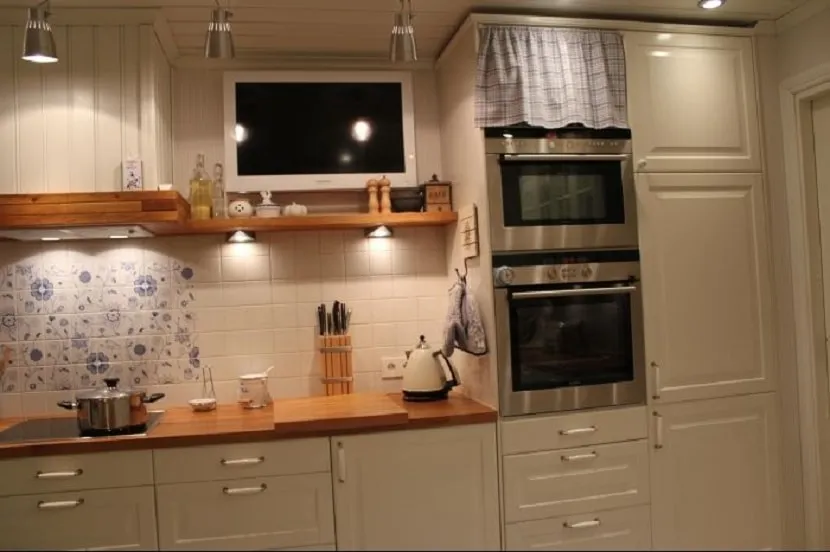 На большинстве современных кухонь красуются модные мебельные гарнитуры. И у многих даже предусмотрено место под телевизор. Но при его отсутствии нетрудно самостоятельно организовать пространство для его установки.