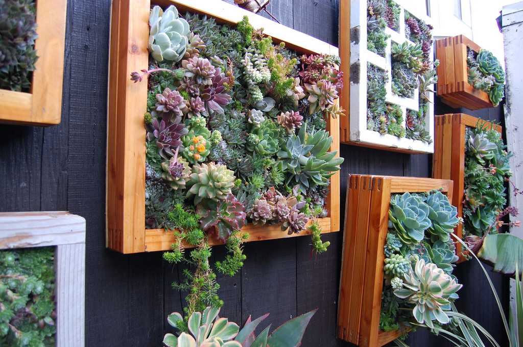 Эффектно смотрятся кустистые и вьющиеся растения. Можно сделать специальные многоуровневые подставки, арки для их удобного роста.