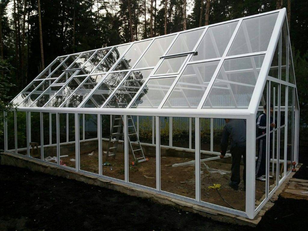 Обладает абсолютной прозрачностью и светопропускаемостью, но стеклянные сегменты тяжелы, требуют установки основательного фундамента (см. Свайный фундамент для теплиц: процесс строительства конструкции) и прочного каркаса. Работать с этим материалом довольно проблематично, необходимо иметь некоторый навык в обработке и установке.