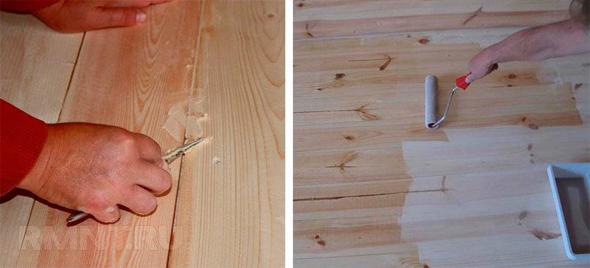 Если на поверхности дощатого основания присутствуют щели или любые другие дефекты, его нужно застелить фанерными листами. Чтобы получить идеально ровную поверхность, рекомендуют использовать материал с замковым соединением. Фанеру крепят к основанию при помощи саморезов.