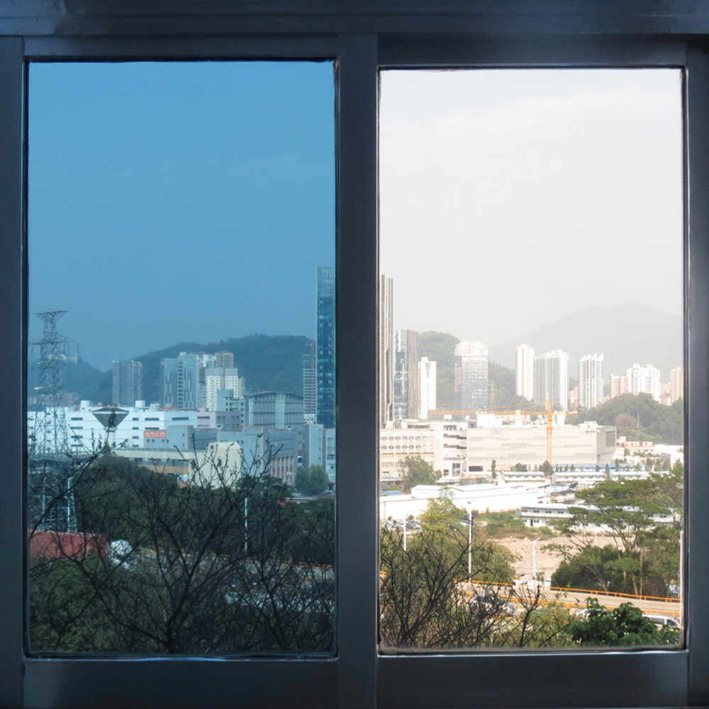- Смарт стекло, или по другому — стекло с изменяемой прозрачностью защищает помещение от любопытных зрителей и солнечного ультрафиолета. Такое стекло подойдет панорамным конструкциям и окнам, занимающим все пространство от пола до потолка.