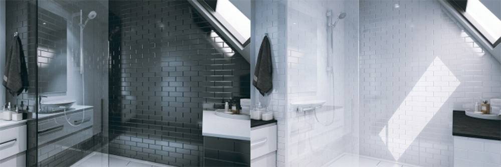 Самым доступным вариантом защиты окружающей обстановки от летящих во время купания брызг, являются полиэтиленовые занавеси. Они уместны в интерьерах стиля модерн, лофт или минимализм.