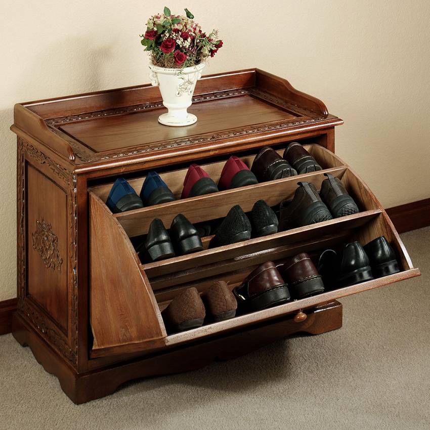 За счёт разнообразия материалов и декора, можно выбрать обувницу, которая подойдёт для любого оформления прихожей. Для классических интерьеров лучший выбор — это натуральное дерево, оно может быть украшено резьбой или позолотой.