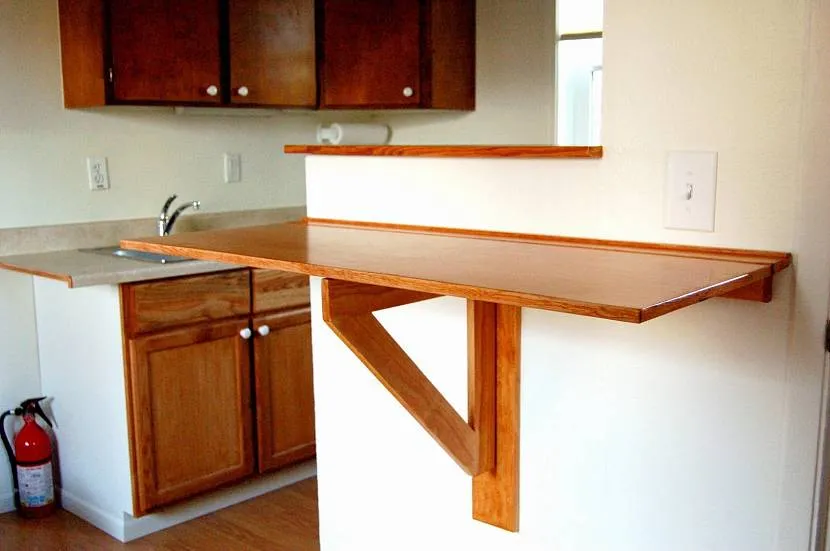 Пристенные. Они располагаются вдоль стен, и с успехом заменяют в небольших кухнях традиционные столики для завтрака, экономя место и облегчая визуальное восприятие помещения. Стойки такого типа обычно не связаны с мебельным кухонным гарнитуром и рабочей поверхностью. Их дизайн может отличаться от дизайна остальной мебели.