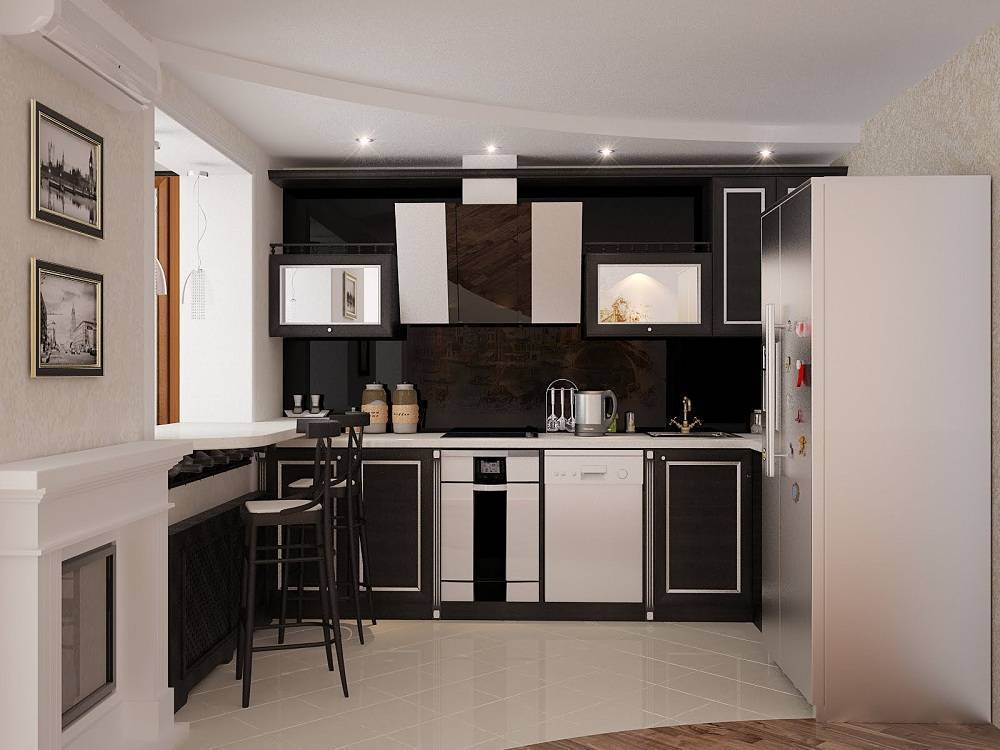 Если техники много, и необходимо достаточно места для хранения, то кухню стоит сделать лишь помещением для приготовления пищи и размещения приборов и посуды.