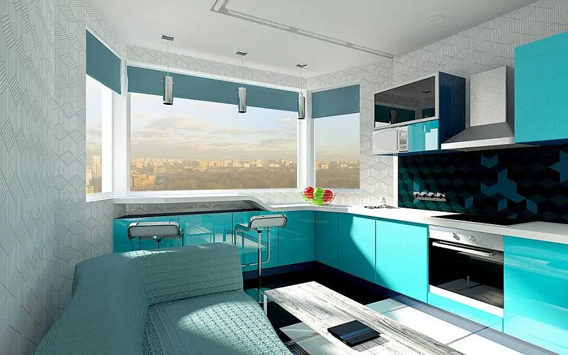 Дизайн кухни в бирюзовых тонах