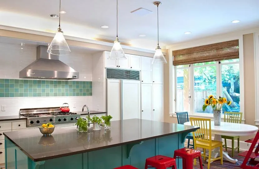 Бирюзовый цвет в интерьере кухни поможет расслабиться после сложного трудового дня и настроиться на позитивный лад.