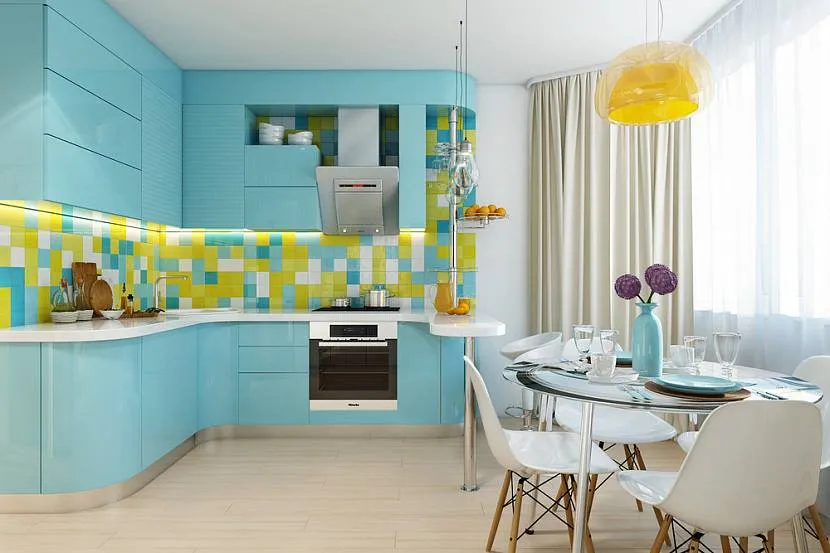 Кухня в бирюзово-желтых тонах