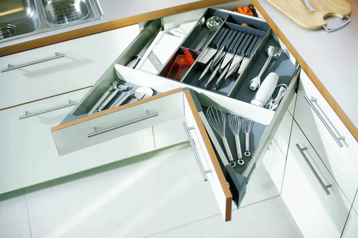 Прежде всего, эту задачу поможет выполнить установка сложных механизмов, которые сделают процесс эксплуатации угловых шкафов эргономичнее. Рассмотрим этот вопрос подробнее.