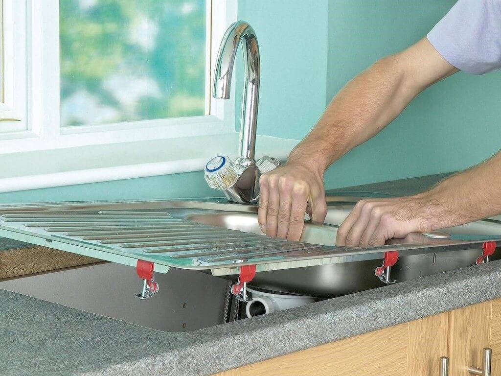 Интегрированная модель установки не требует, так как совмещена со столешницей. А врезную мойку можно установить и своими руками. Для этого необходимо: