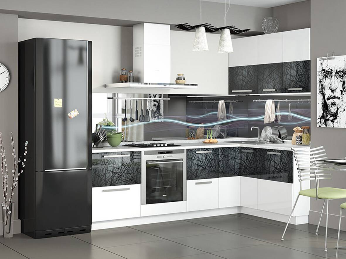 Угловой тумбой принято называть гарнитур, который располагается вдоль стен помещения. Его длина зависит от предпочтений хозяина кухни, а также ее пространства. Также стоит знать о том, что стороны гарнитура должны располагаться строго перпендикулярно друг другу: