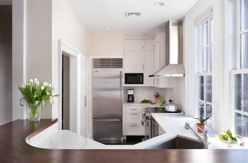 Кухня с маленькой прямоугольной мойкой в углу