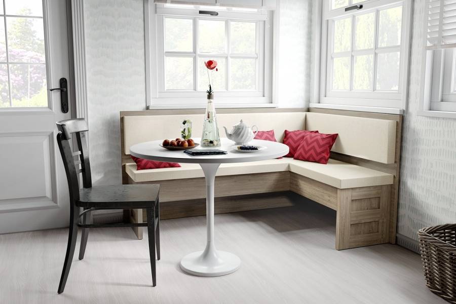 таких комнатах обычно ставят угловые диваны. Они небольшие, но приносят