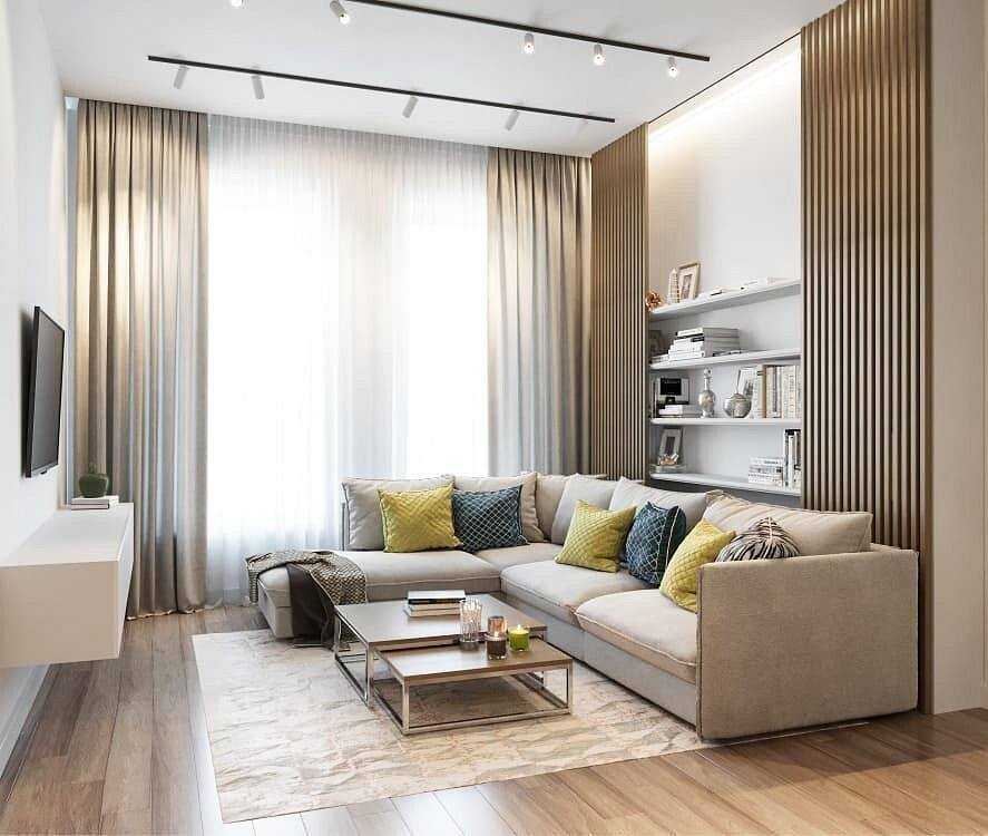 Простое правило, «маленькая комната — маленькая мебель, большая комната — большая мебель», неактуально потому, что во многом выбор её зависит от формы помещения. Решение, где общая площадь гостиной состоит из двух одинаковых половинок, неприменима в комнате с соотношением 1 к 3 и наоборот.