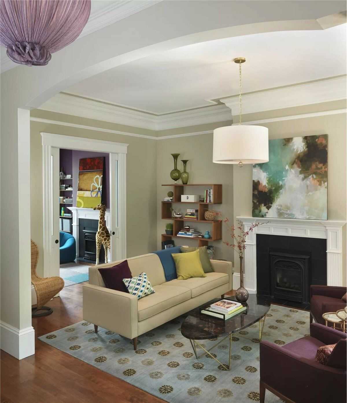 - Если у вас яркая гостиная, мебель в ней не должна быть ни бледной, ни излишне вызывающей. Найдите цвет, который будет близким по тону с отделкой стен, но иметь иной оттенок.