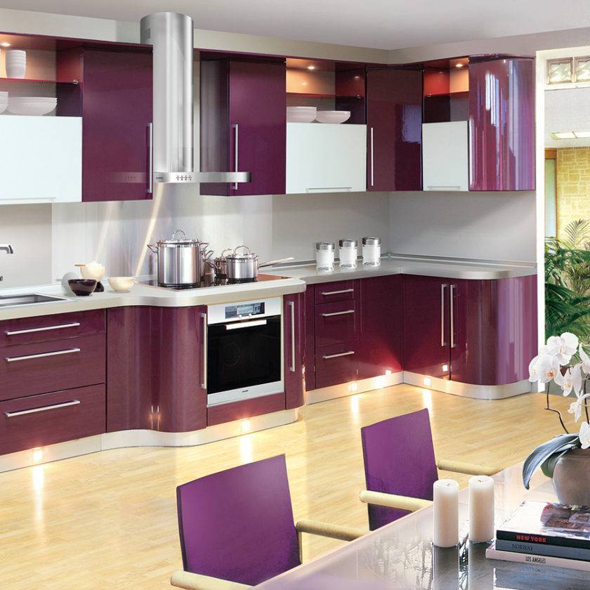 - Красивый внешний вид. Кухонные фасады обладают привлекательной расцветкой и глянцевым блеском. Благодаря глянцу можно визуально увеличить пространство, что особенно актуально для маленьких кухонь.