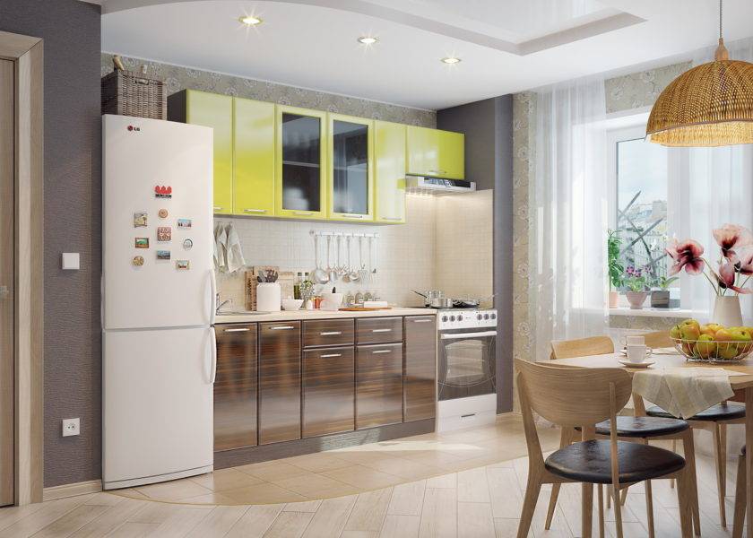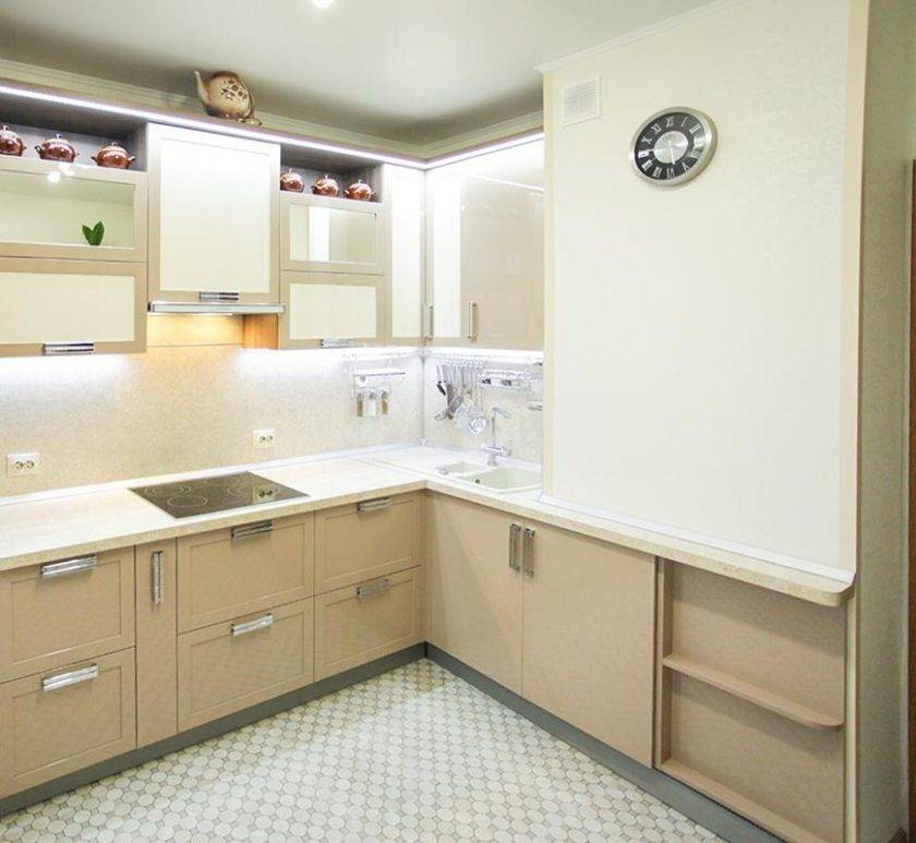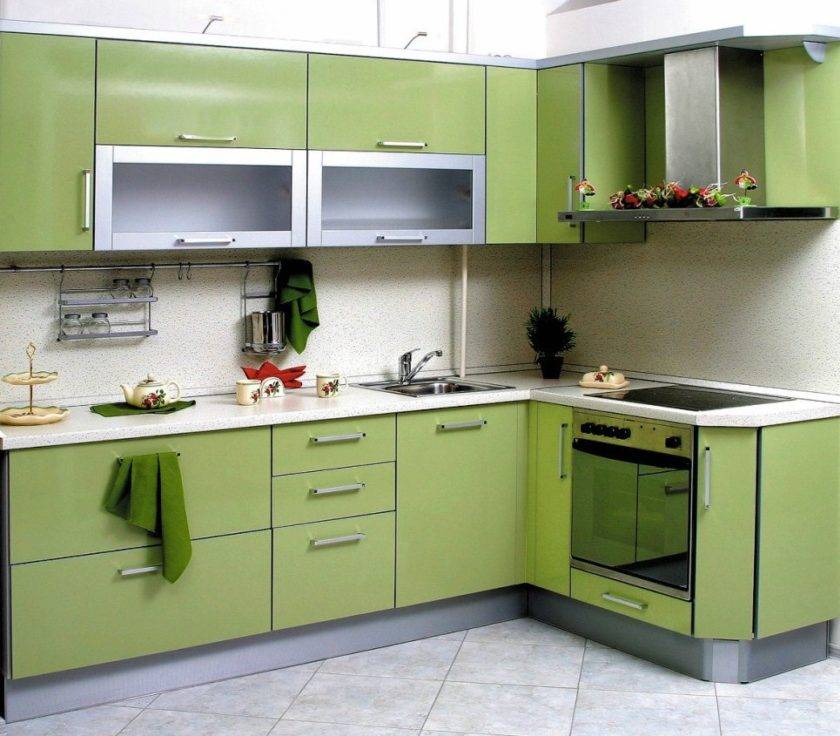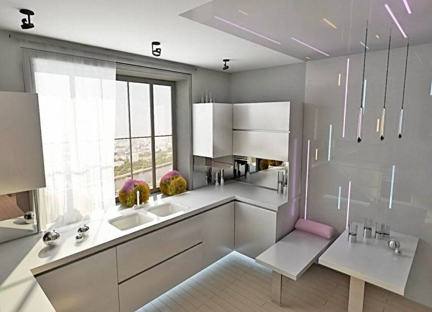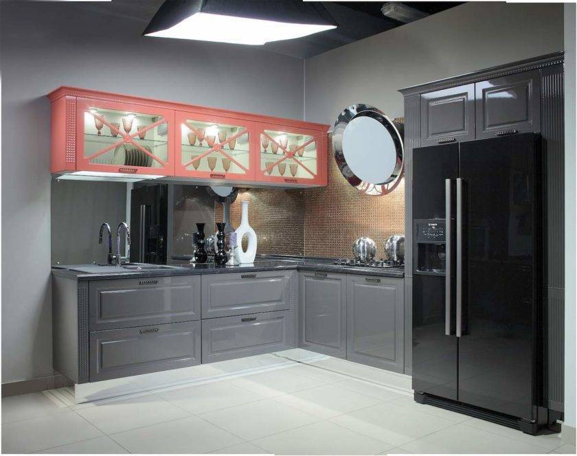 Даже при установки малого углового кухонного гарнитура в маленькую кухню, комната станет еще меньше, чем есть. Для того чтобы визуально «расширить» помещение пользуются рядом дизайнерских решений. Например, в фасады массово встраиваются зеркала или поверхность фасадов делается зеркальной.