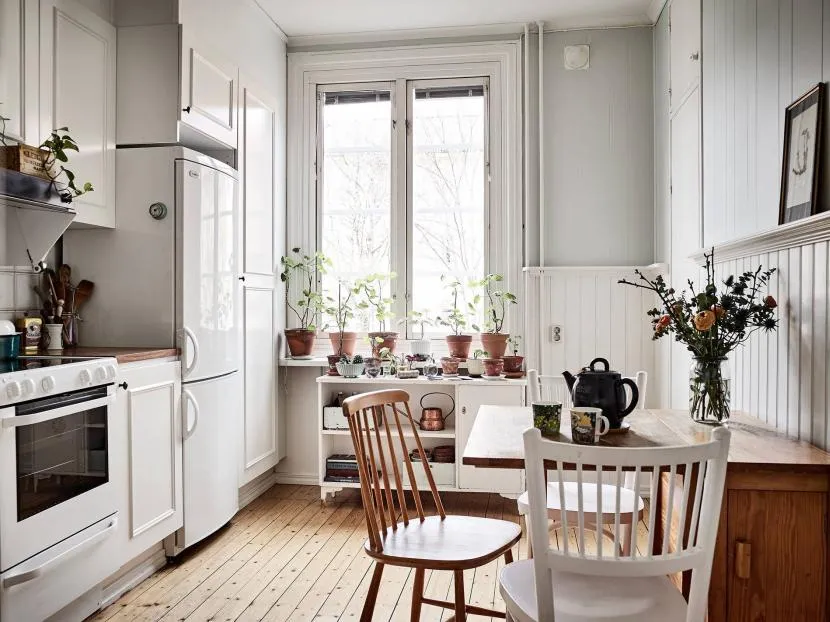 Белоснежные скандинавские маленькие кухни уже несколько приелись. Добавление новых элементов в холодный нордический интерьер позволило реанимировать этот стиль и взглянуть на него по-новому.