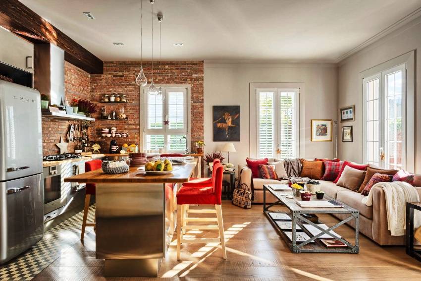 Если квартира имеет вид студии, а кухня совмещена с гостиной, именно диван является чертой разграничения двух разных зон. Иногда маленькие диваны ставят на кухню для рационального заполнения площади, ведь здесь, как и в любой другой комнате, должен быть комфорт.