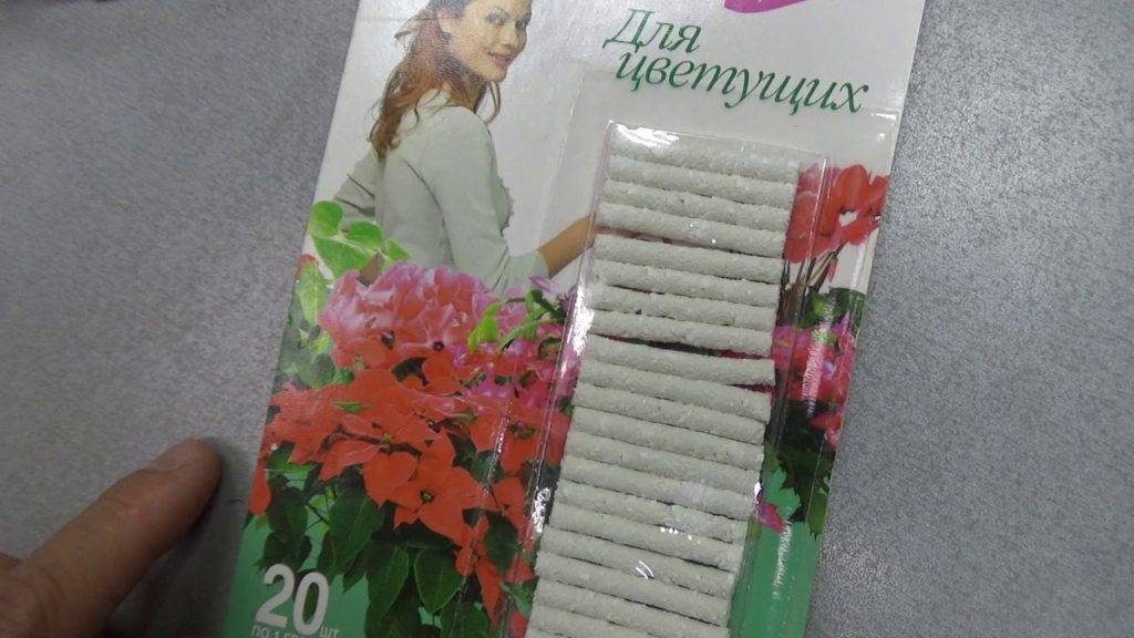 Чтобы не задаваться вопросом, когда подкармливать герань, уход в домашних условиях можно облегчить применением удобрений-палочек или органо-минеральных смесей, которые постепенно отдают микроэлементы в грунт. Палочки втыкают в почву, а удобрения длительного действия смешивают с грунтом весной.
