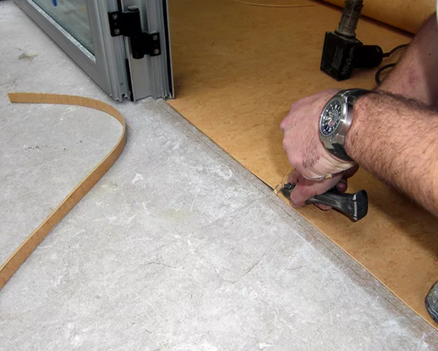 Стыки отдельных полотен линолеума обычно фиксируются с помощью холодной сварки.