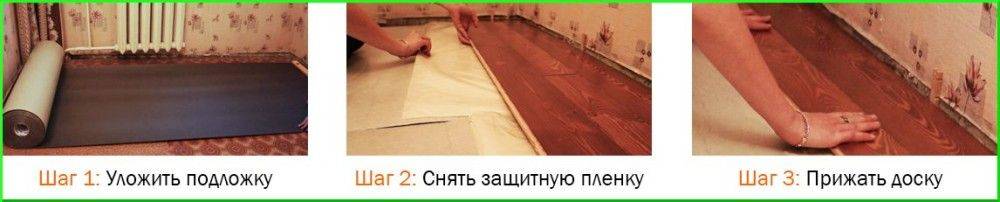 - В большинстве случаев материал устанавливают от двери в направлении шага.