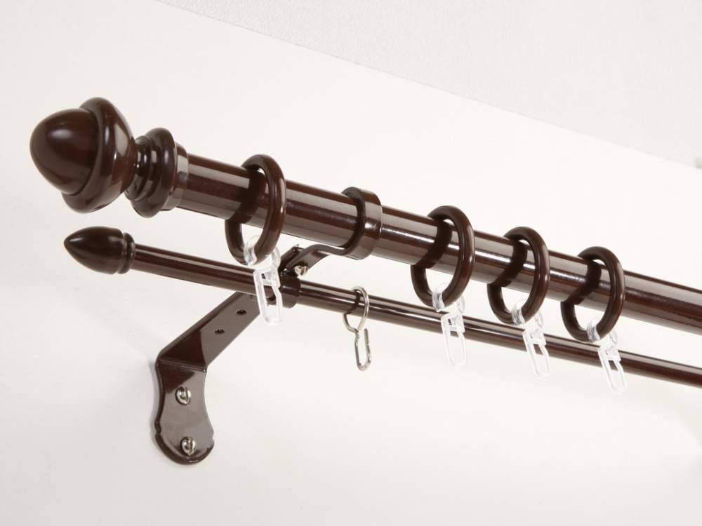 Круглые карнизы, у которых основным элементом является штанга, являются классическими моделями. По краям изделия крепятся специальные заглушки или декоративные наконечники. Они выступают в качестве украшения, не позволяют кольцам соскочить с трубы