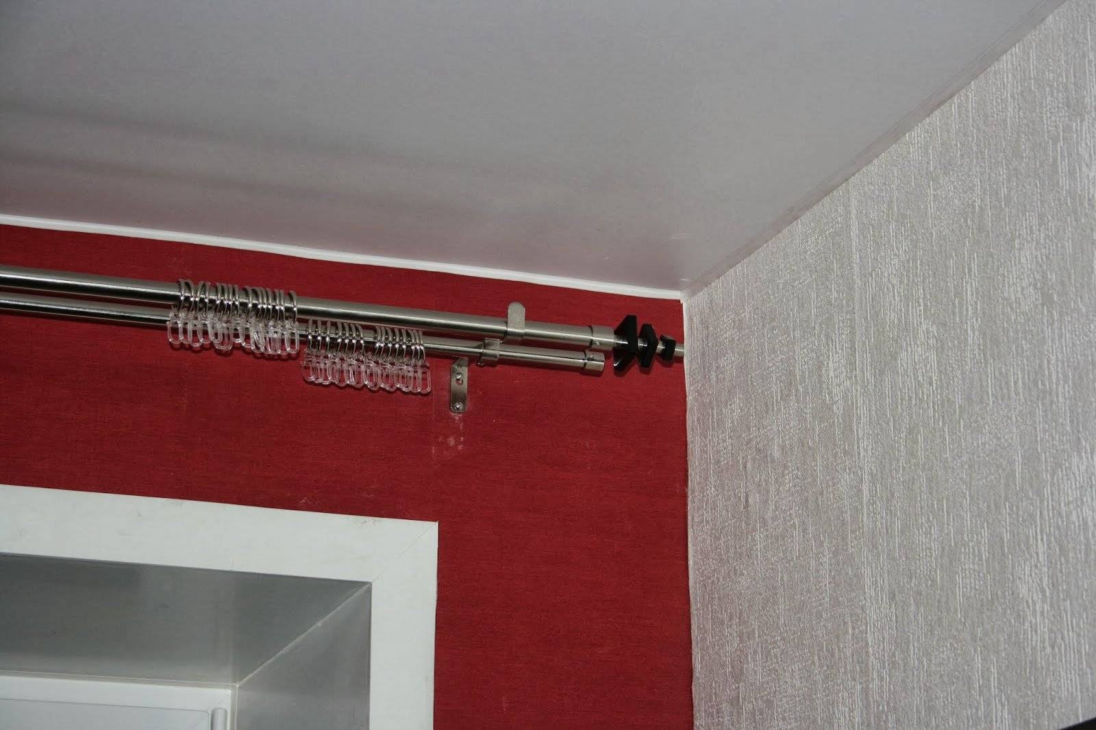 Натяжной потолок не предполагает закрепления каких-либо элементов на натянутом полотне, поэтому установка держателя для гардин выполняется особым образом: