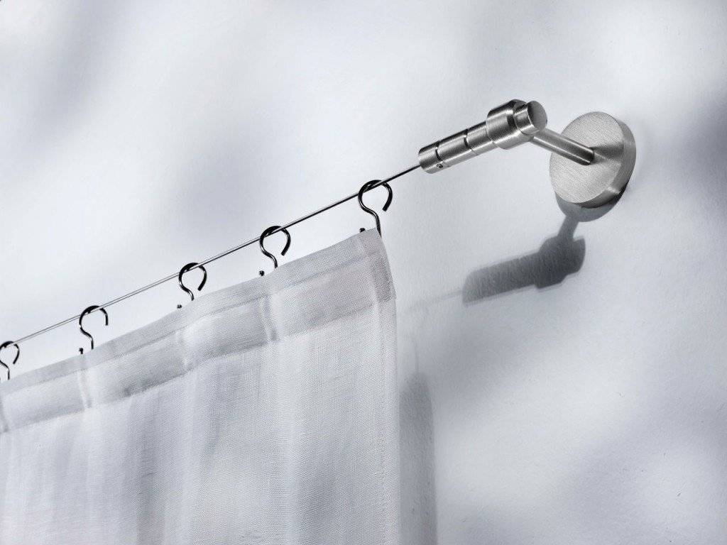 Основной особенностью струнных моделей является их особое устройство. Они состоят из стальной нити, кронштейнов, крючков. Длина струны не должна превышать пяти метров, ее можно повесить в несколько рядов. Однако стоит учитывать, что на тонкой нитке можно вешать только легкий текстиль. Вес тяжелых портьер конструкция не выдержит. Установка этих карнизов не должна вызвать трудностей даже у неопытного человека, сам процесс заключается в следующем: