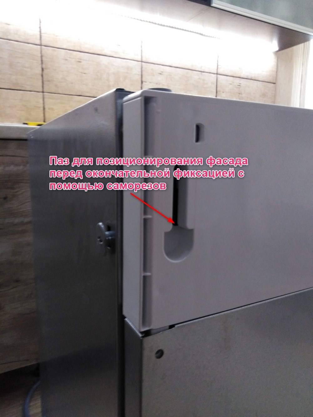 Всё фасад с ручкой зафиксирован на панели посудомоечной машины.