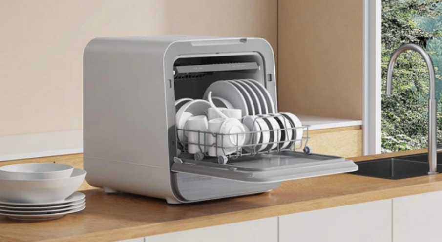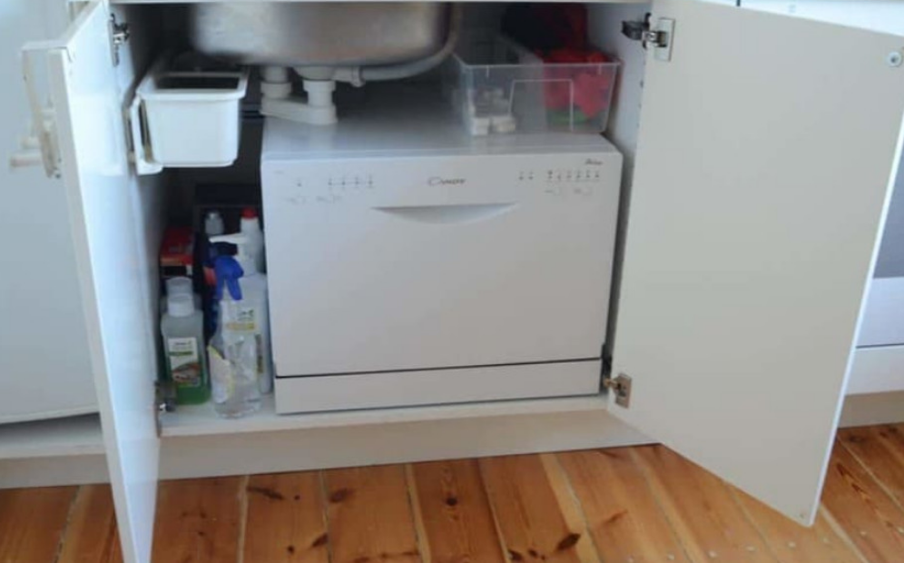 - Маленькие портативные посудомойки высотой до 50 см вмещают всего 4-6 комплектов посуды.
