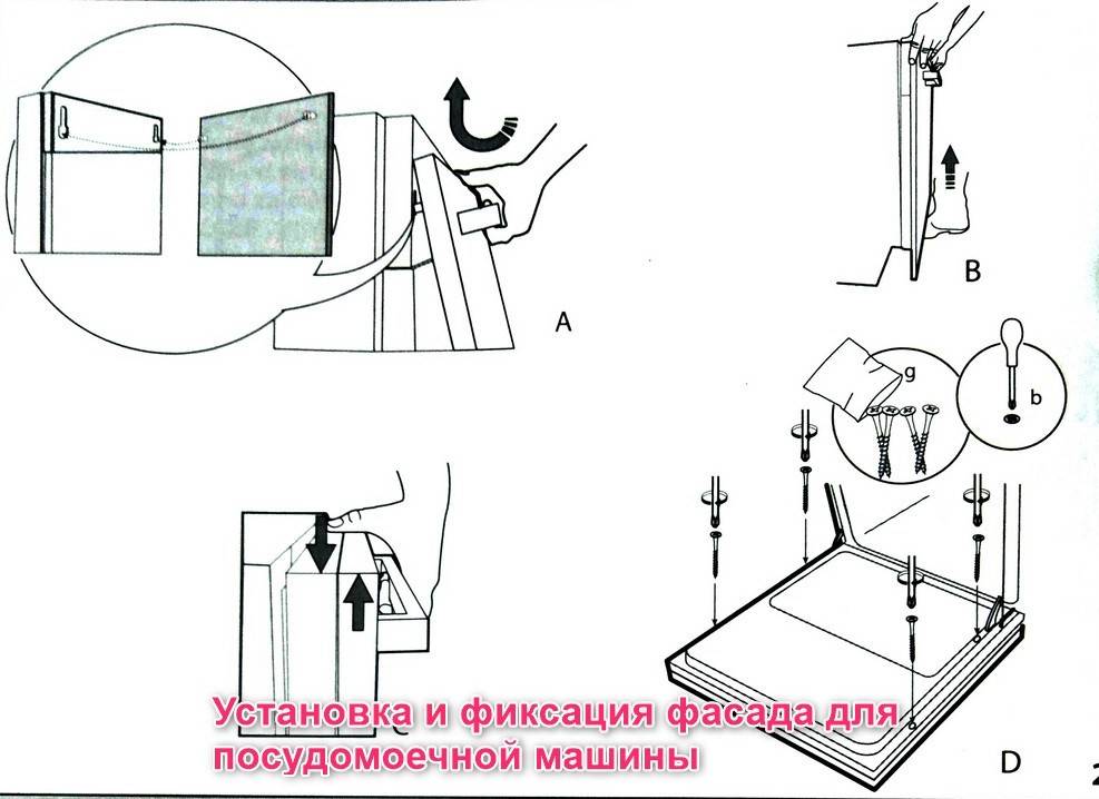 дверку посудомойки, выравниваем и фиксируем её саморезами.