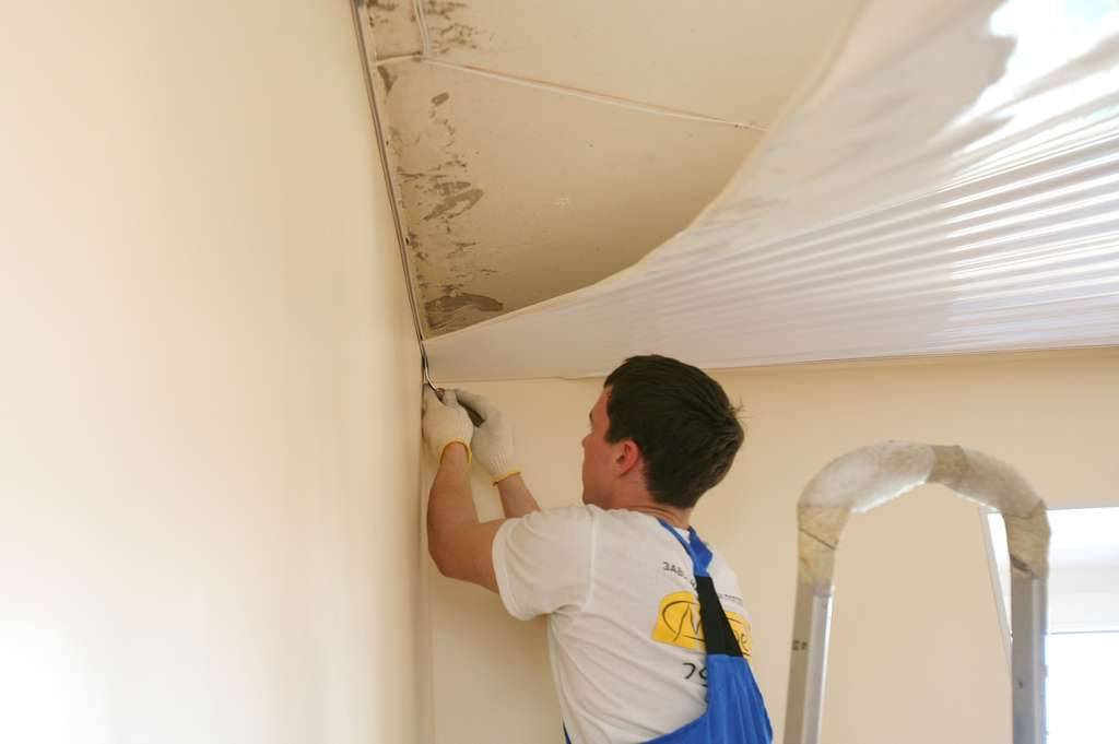 Первый вариант — снять полотно, прикрепить к основанию платформы и натянуть покрытие обратно. Но демонтаж с последующей установкой возможен только для плёночного потолка с гарпунным креплением. Если приглашать для работы специалистов, получится дорого, а своими руками — сложно. Кроме того, из-за вмешательства пропадёт гарантия установщика.