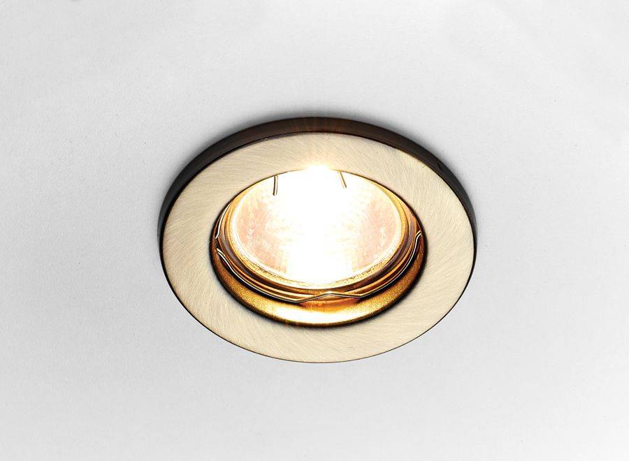 Через отверстие для люстры или установленного раньше светильника прокидывают провод. Острые концы предварительно заматывают изолентой, чтобы не повредить потолок изнутри. С помощью клеммников соединяют провода светильника. Прибор вставляют в подготовленное место и крепят подвес к перекрытию через отверстие в цоколе. Поправляют спот, чтобы он располагался ровно относительно потолка. Провода соединяют с подключенными кабелями от люстры.