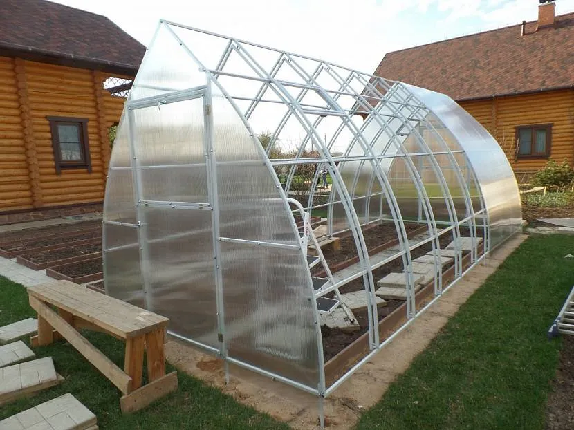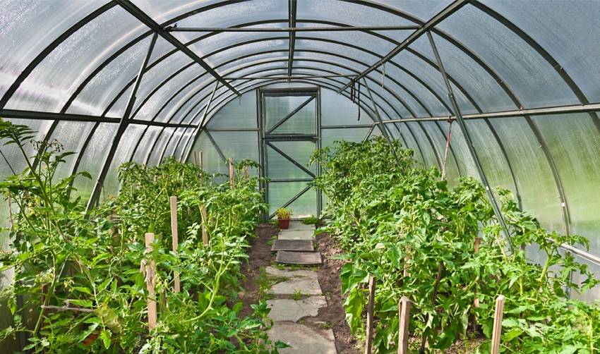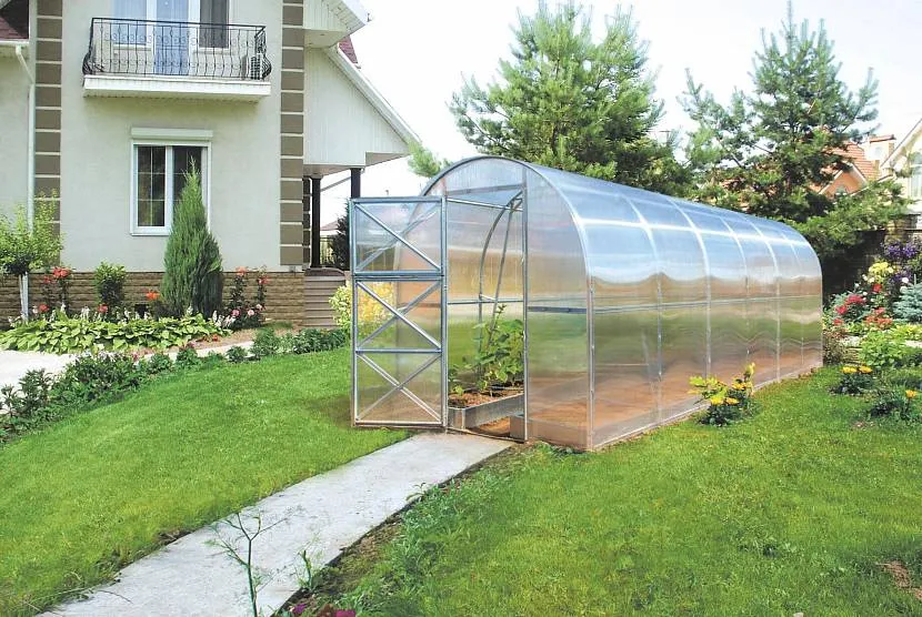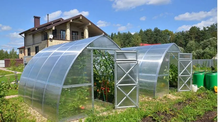 Полукруглая прочная теплица на участке с удобным доступомИсточник cms-bx.ru