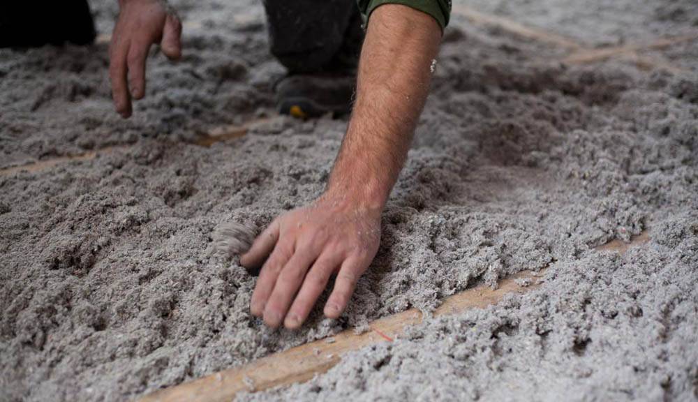 Отапливаемый пол может оборудоваться на деревянных балках. Тогда между лагами допускается прокладывать эковату в роли утеплителя. Смесь целлюлозных волокон дополнена противопожарными антипиренами. Благодаря этому сырьё не воспламеняется. Эковата отличается хорошим шумопоглощением и долговечностью. Однако, качественная изоляция возможна лишь при задействовании оборудования или изучения нюансов раскладки утеплительного материала.