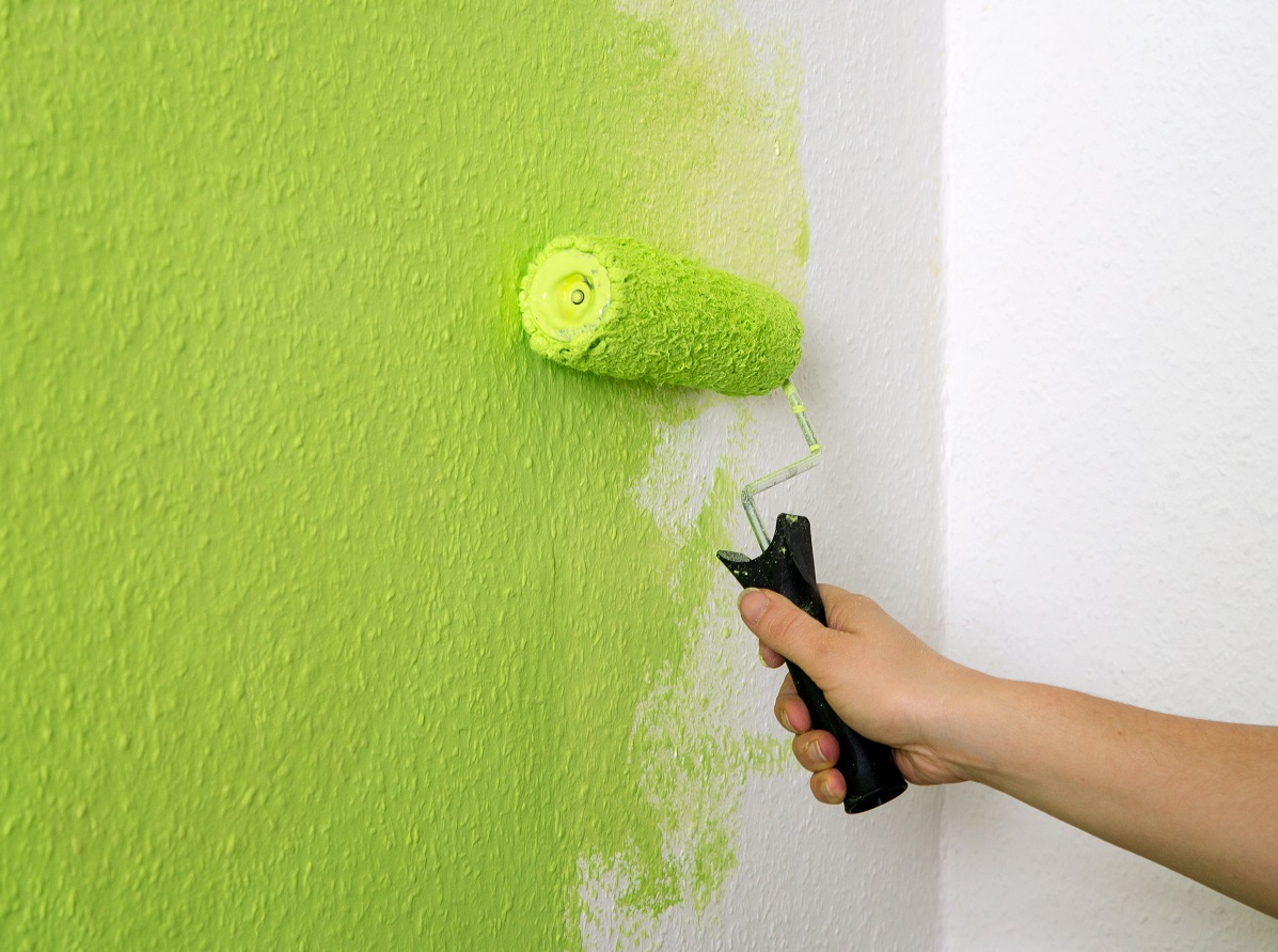 После подготовки стен под покраску можно приступать к главному процессу. Наносить водоэмульсионную краску следует в два-три слоя валиком или кистью. Для валика продаются различные насадки, некоторые из них помогут получить эффект шершавой стены.