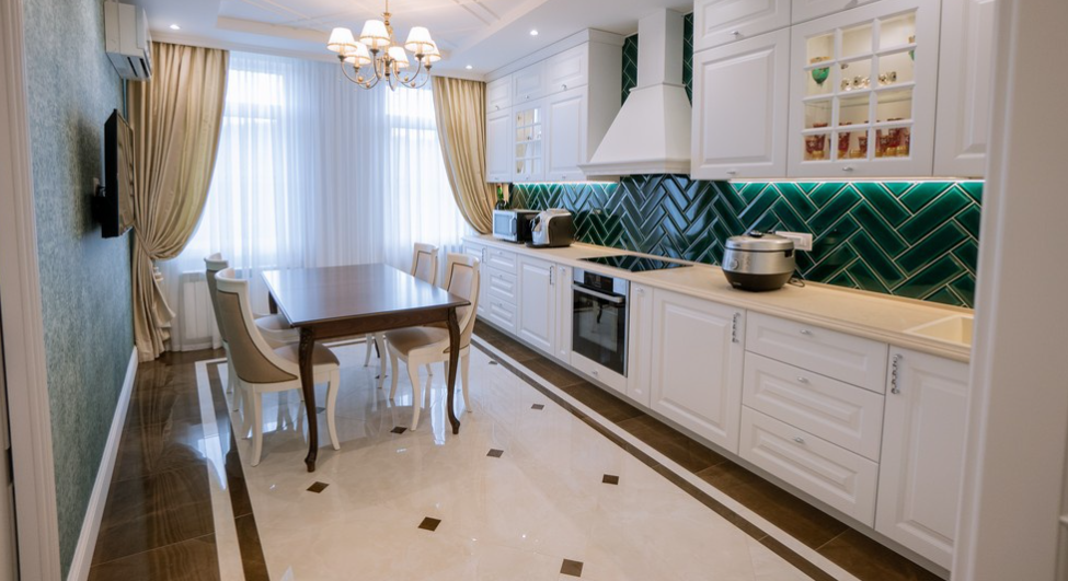 Оно не должно резонировать с общим дизайном кухни, и имеет огромное значение для комфортного времяпровождения за готовкой и приемом пищи.