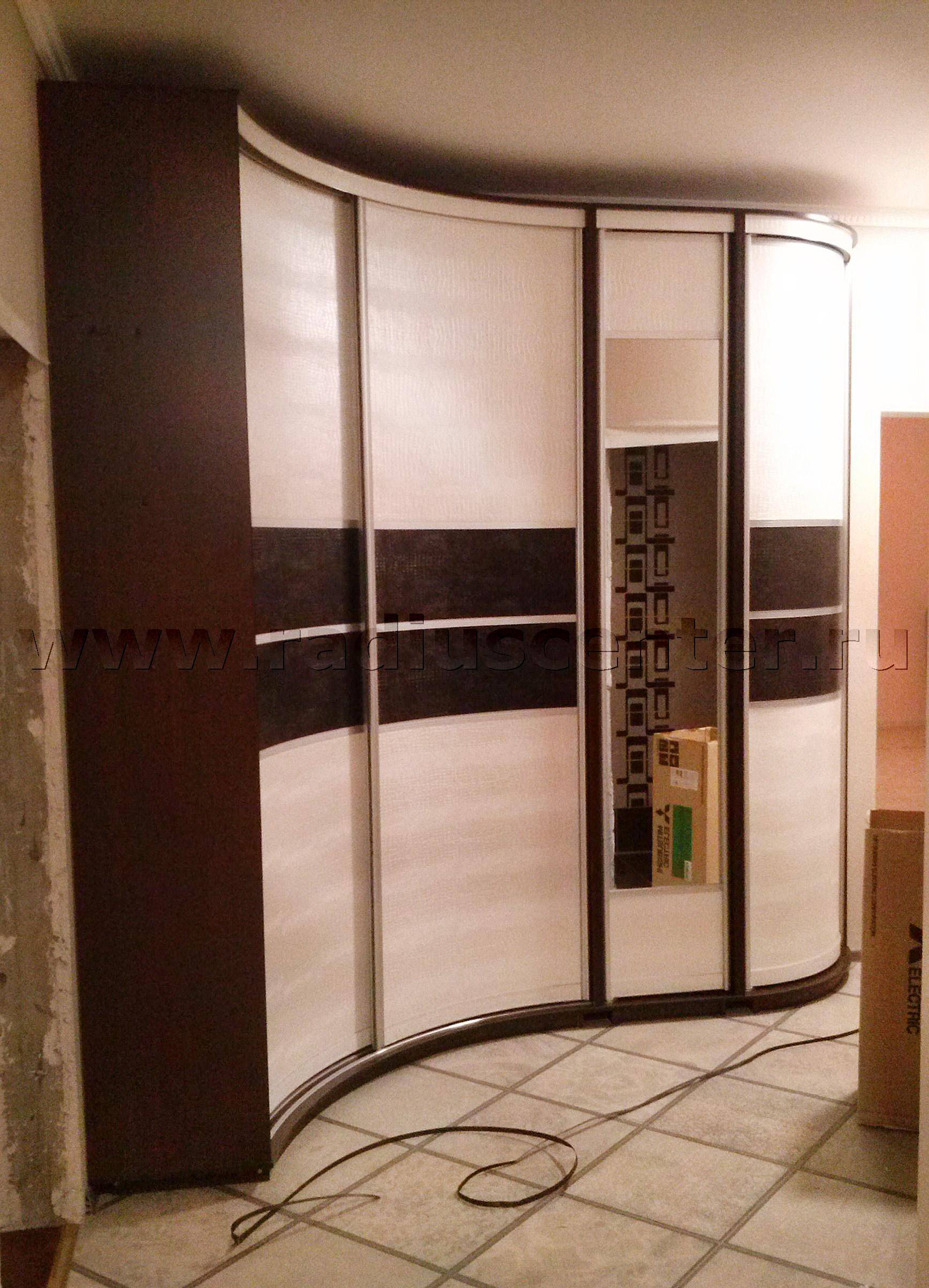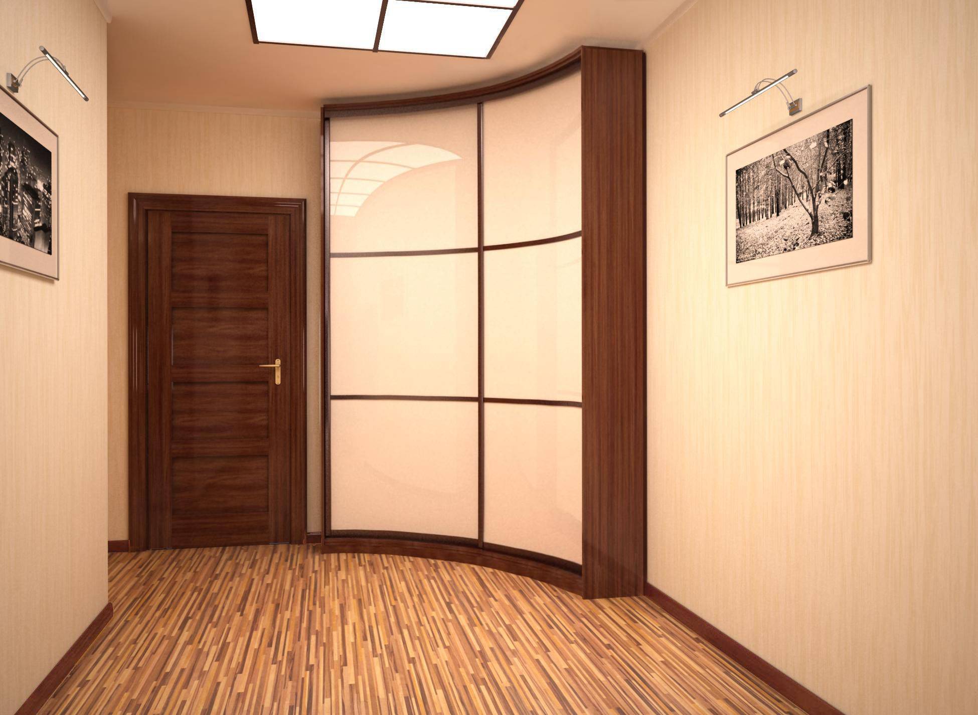 - компактность — экономия места в прихожей – основная задача, которую помогает решить угловой шкаф купе. Отпадает необходимость рассчитывать величину размаха распашной двери, которая в открытом состоянии может помешать свободному проходу. Размещение в углу помещения соответствует принципам эргономики: прихожая не захламляется беспорядочно расставленной и развешанной обувью и верхней одеждой, все необходимое удобно складывать и брать из шкафа;
