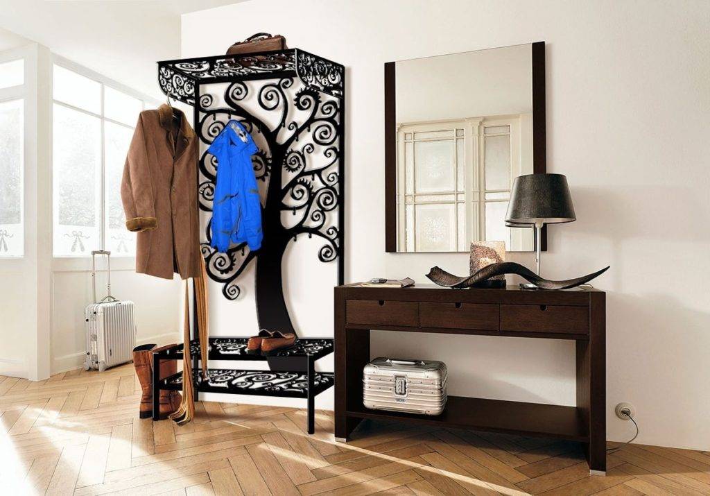 Важно! Если прихожая имеет совсем маленькую площадь, то напольная конструкция может оказаться громоздкой и неудобной в использование, в таком случае практичнее будет повесить настенный вариант вешалки. С каждым годом на современном рынке все больше появляются оригинальные и необычные вешалки, среди которых потребитель может найти как дешевую, так и роскошную модель, подходящую под индивидуальный дизайн прихожей