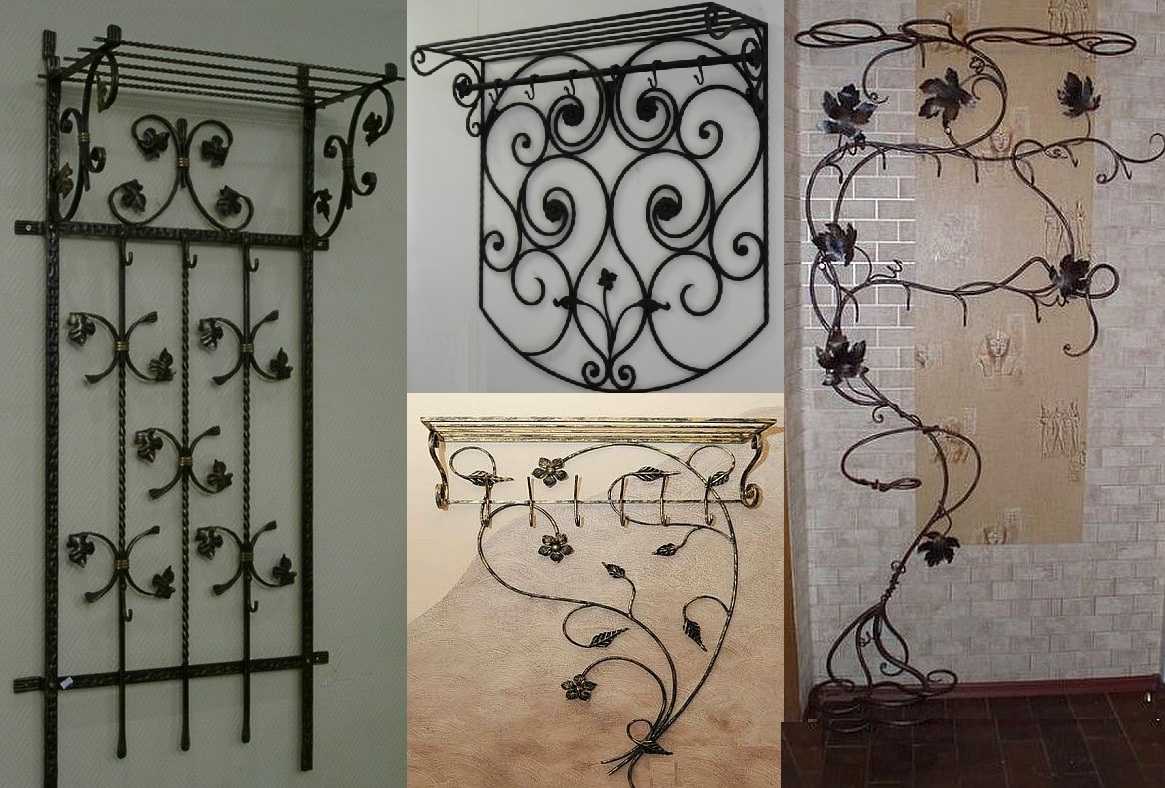 Кованные вешалки — это целая категория. Разный уровень исполнения, разные мотивы и узоры. Красиво.
