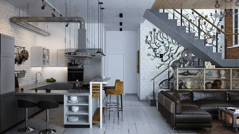 Кухня с лестницейИсточник archidea.com.ua
