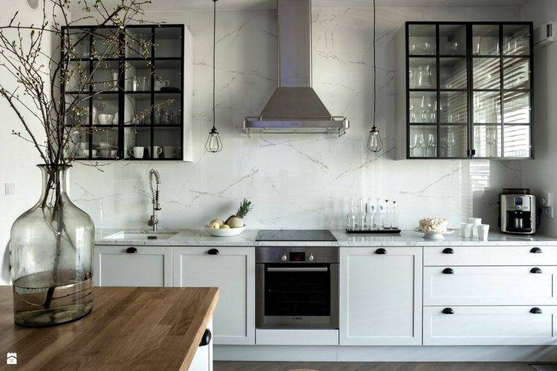 Это низкие, часто плоские приборы, которые будут хорошо работать в любой комнате. В случае классического горизонтального типа расстояние между вытяжкой и варочной панелью рассчитывается в зависимости от типа варочной панели. Стандарты здесь другие. Для газовых конфорок воздухозаборник расположен над нижней частью варочной панели, около 65-85 см. А если у вас есть электрическая версия, то вытяжка может быть установлена заподлицо с верхними кухонными шкафами. То же самое относится и к встраиваемым приборам. В этом случае высота вытяжки над варочной панелью может быть чуть ниже – от 60 до 80 см.