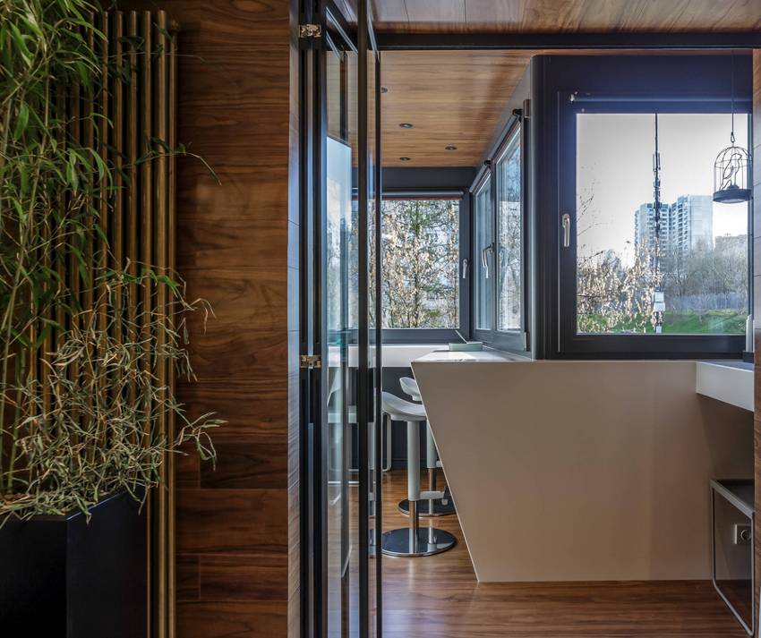 - Эстетичность. Благодаря разнообразию текстур и расцветок, использование ламинированных панелей позволяет экспериментировать с интерьером и делать из лоджии полноценное помещение. Даже самые требовательные заказчики будут удивлены предложенному разнообразию.
