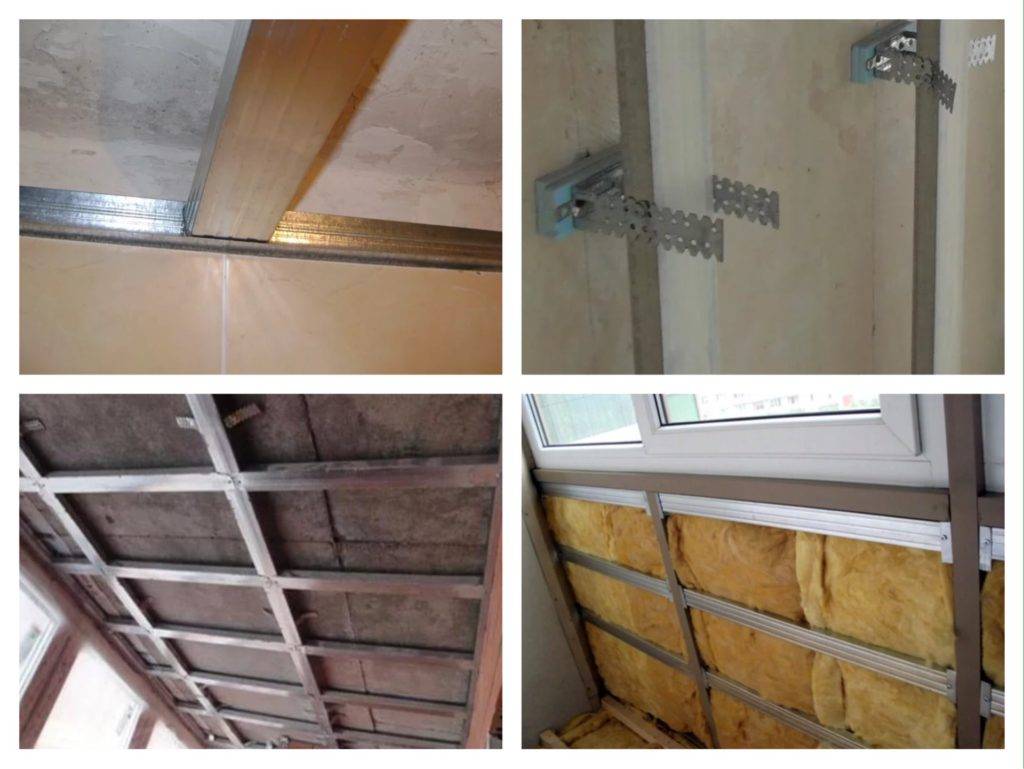 - Аналогичным образом устраивается обрешетка вдоль боковых стен и балконного ограждения. На отрезки нужной длины профиль следует нарезать ножницами по металлу.